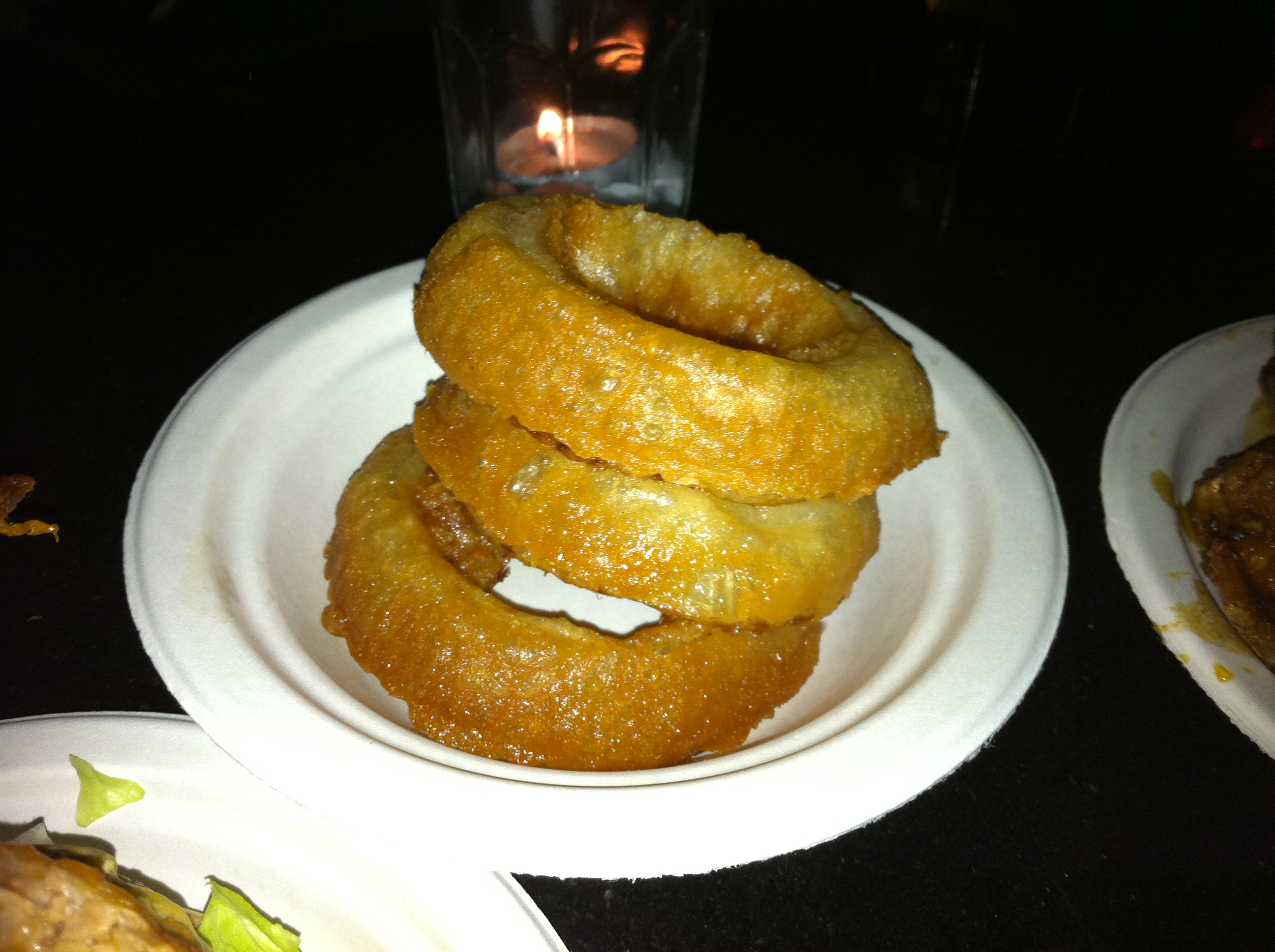 You get around half-a-dozen onion rings per serving, but Wicket couldn’t control himself before I could snap this photo.