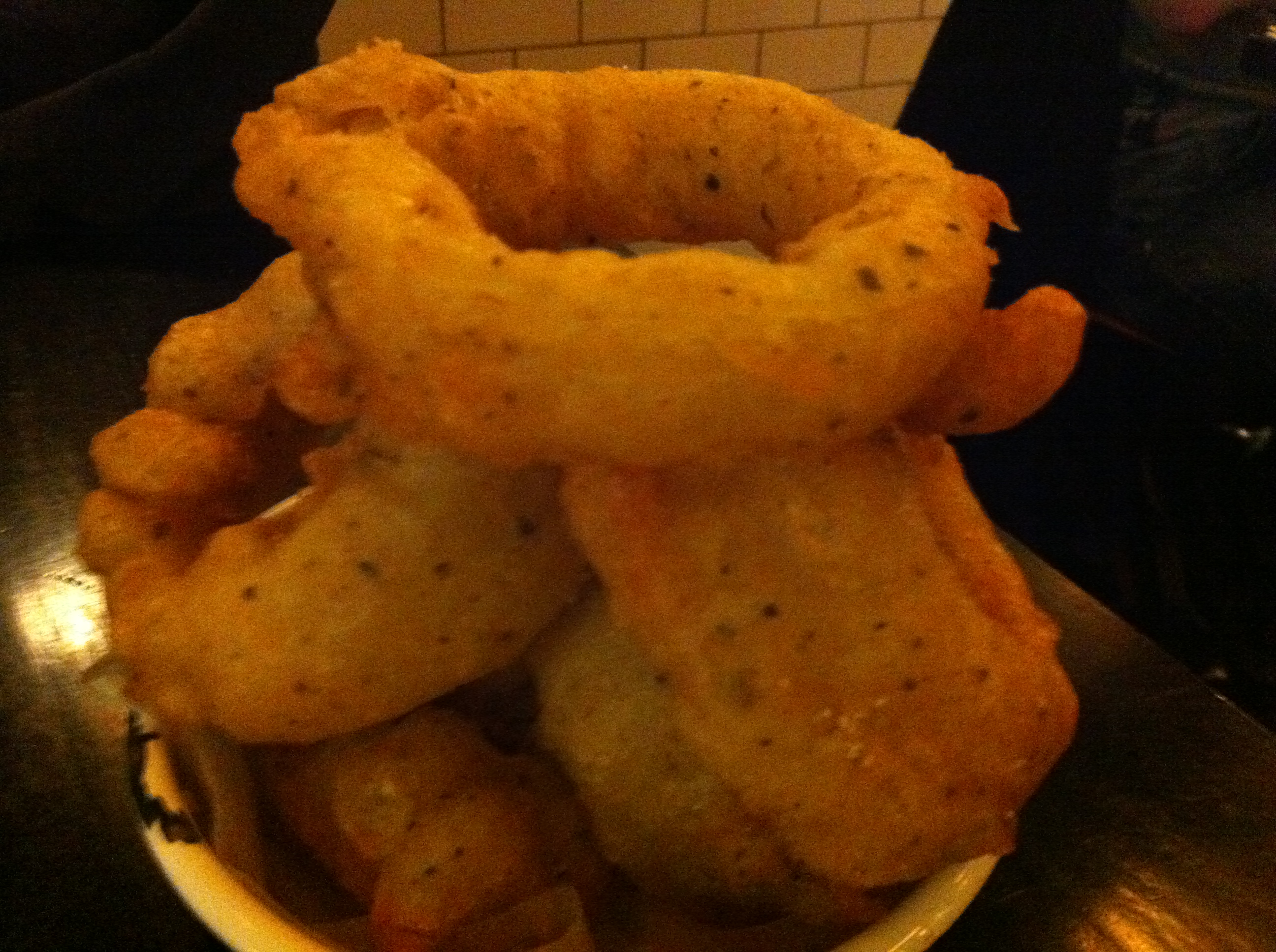 One of the disappointments at Meateasy were the excessively oily onion rings. Byron’s onion rings are the best I’ve had and I order them every time – I still have no idea what Byron’s chips taste like. The peppery batter is initially crispy but gently gives way to a pleasingly fluffy underlayer covering the whole sliced ring of onion – no reconstituted mush here. Plus, it’s unremarkably un-oily for a deep fried side dish. Excellent.