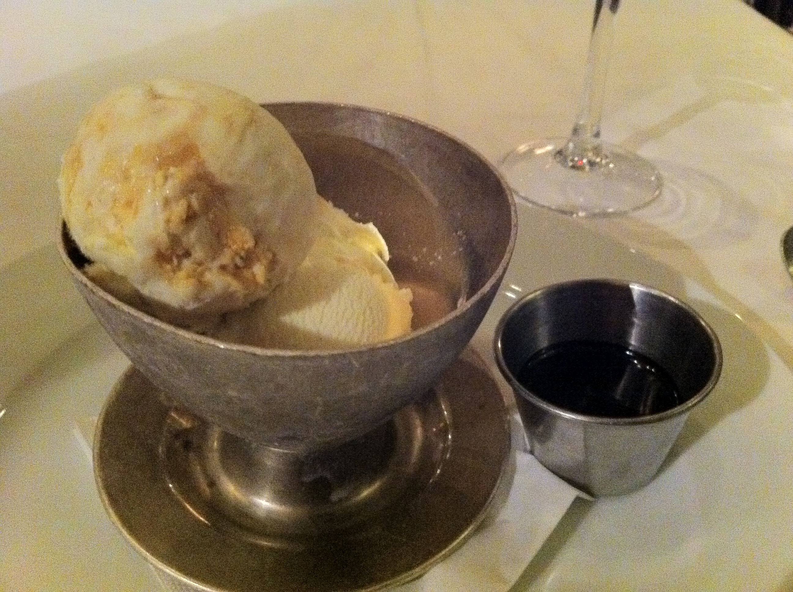 Equally disappointing was my dessert of honeycomb ice cream with chocolate sauce. The ice cream was overwhelming in its cloying sweetness and had none of the subtle, layered creaminess and delicate sweetness of the wild honey ice cream with crushed honeycomb at Wild Honey. The dark chocolate sauce was overpoweringly strong, but I could live with that since it blotted out the sickliness of the ice cream.