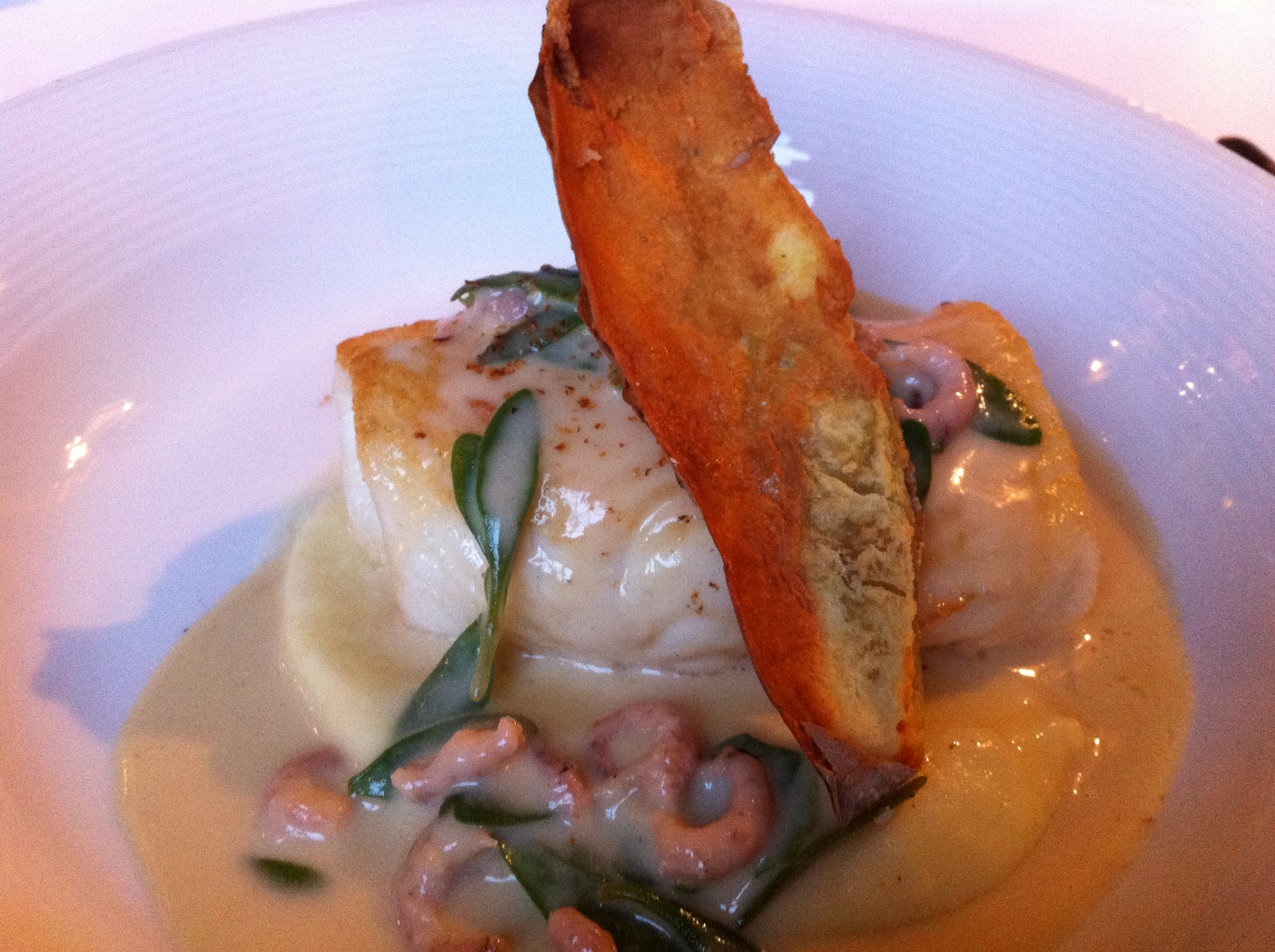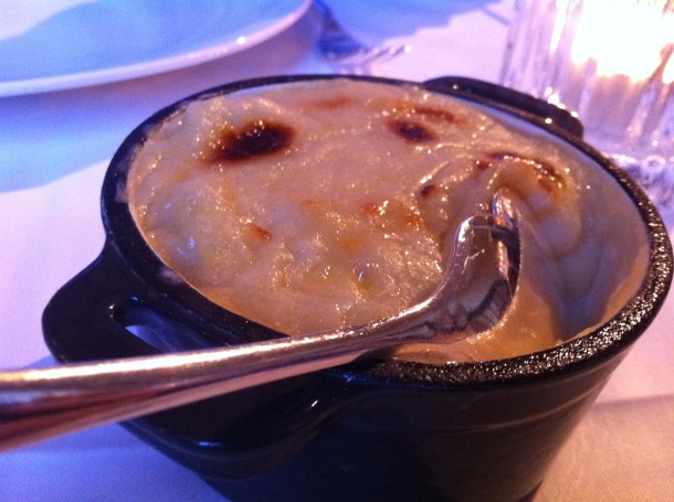 Soles in Coffins was originally a much stodgier dish involving a baked potato and a much creamier sauce. Here, lemon sole is served on top a bed of crispy potato and prawns and then covered in a vermouth cream. I generally prefer firmer, meatier fishes, but was willing to give the Soles in Coffins a go since I generally like flatfish. The chunky serving of fish is certainly soft and goes well with the creamy sauce and potato which is quite fluffy and creamy rather than crispy. The prawns are an unnecessary addition to an otherwise unfussy, comforting dish that isn’t stodgy.