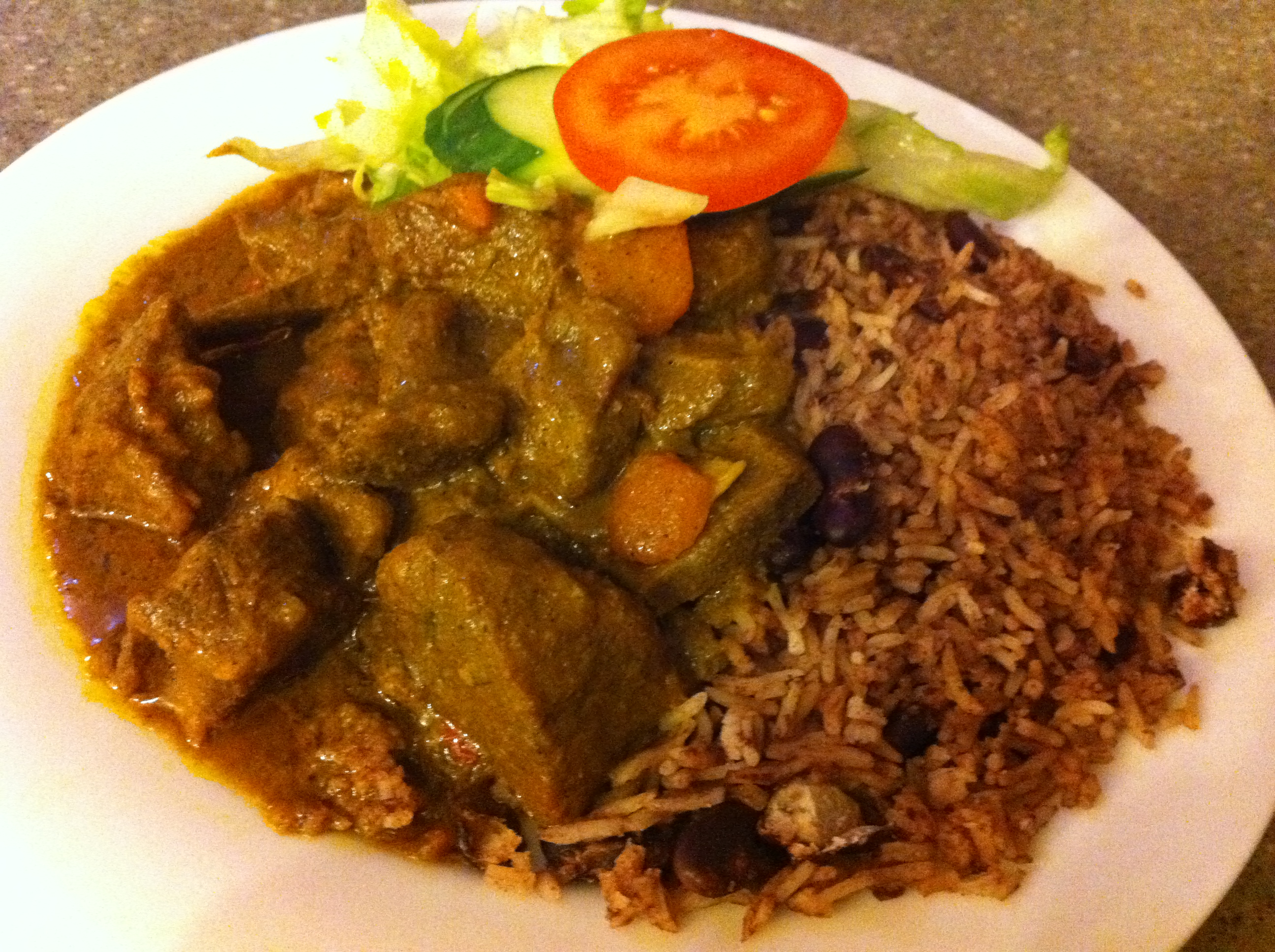 The bright decor festooned with amateurish paintings resembles a student union cafeteria and isn’t anything to write home about. Aside from the mixup with Wicket’s choice of mutton curry accompaniment, service was friendly and helpful. Ordering has a slightly fast-food feel to it – order at the counter and then snag a table where your food is brought to you. Since the L-shaped room is quite small with space for only a dozen or two covers at most, it’s best to arrive early. This is especially true as some popular dishes, such as the jerk chicken, can run out as the night progresses.