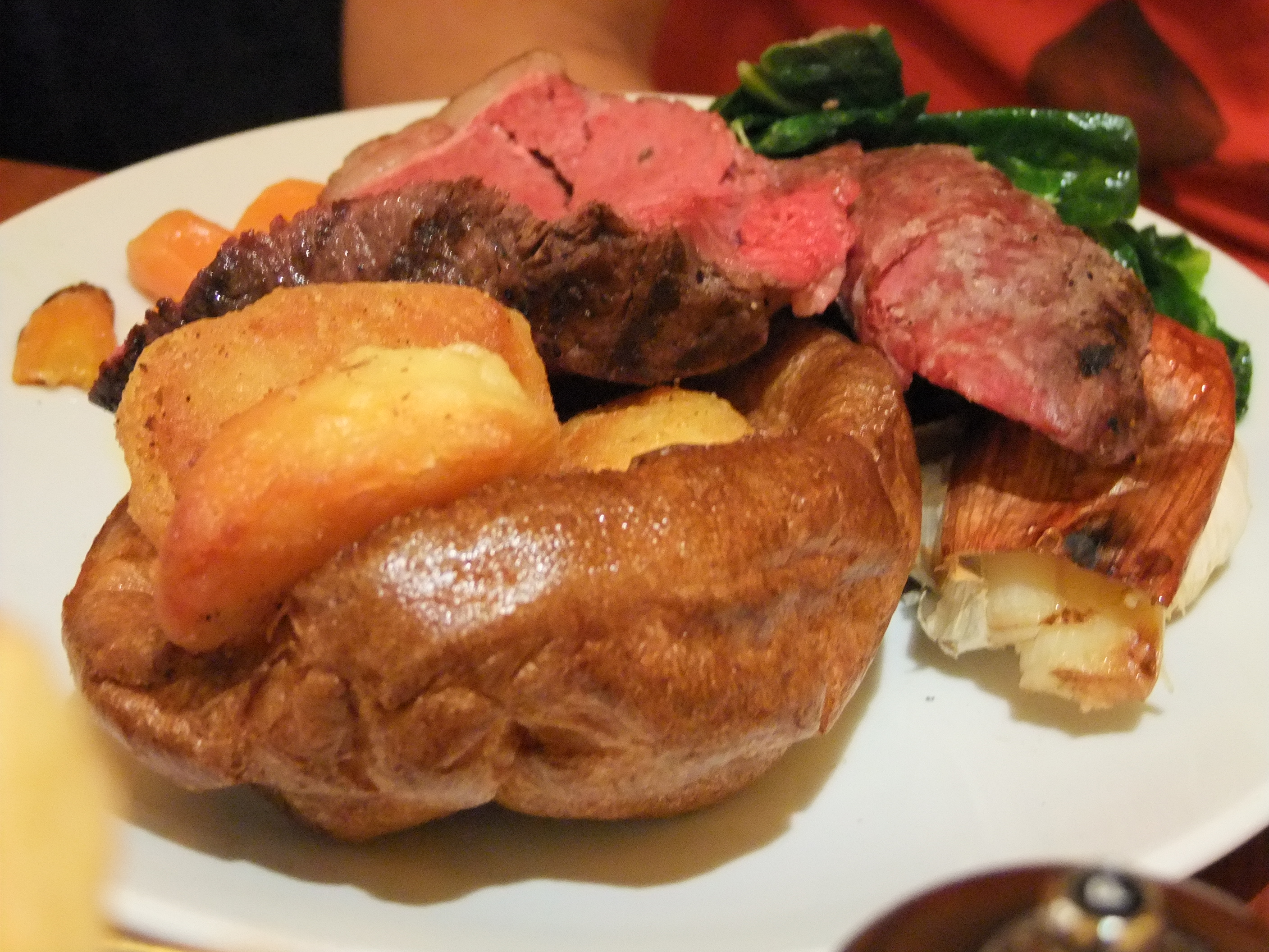 The rare rump/silverside of beef was very tender and had a nice clean taste apart from that lovely, subtle tang typical of good silverside. The large Yorkshire pudding was light and fluffy and wasn’t too buttery or heavy. Delightful.