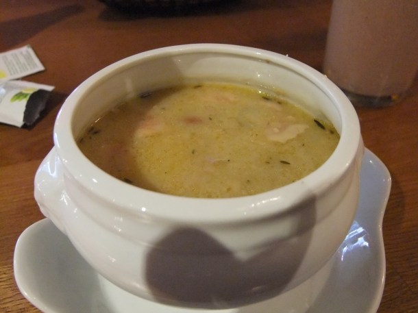I opted for the clam chowder which had some beans and tasty chunks of potato in its watery broth. There was very little actual clam meat or flavour though, while the broth itself was quite salty, almost certainly due to the liberal amounts of bacon lurking in it. If I wanted bacon chowder, I would’ve asked for it. Disappointing.