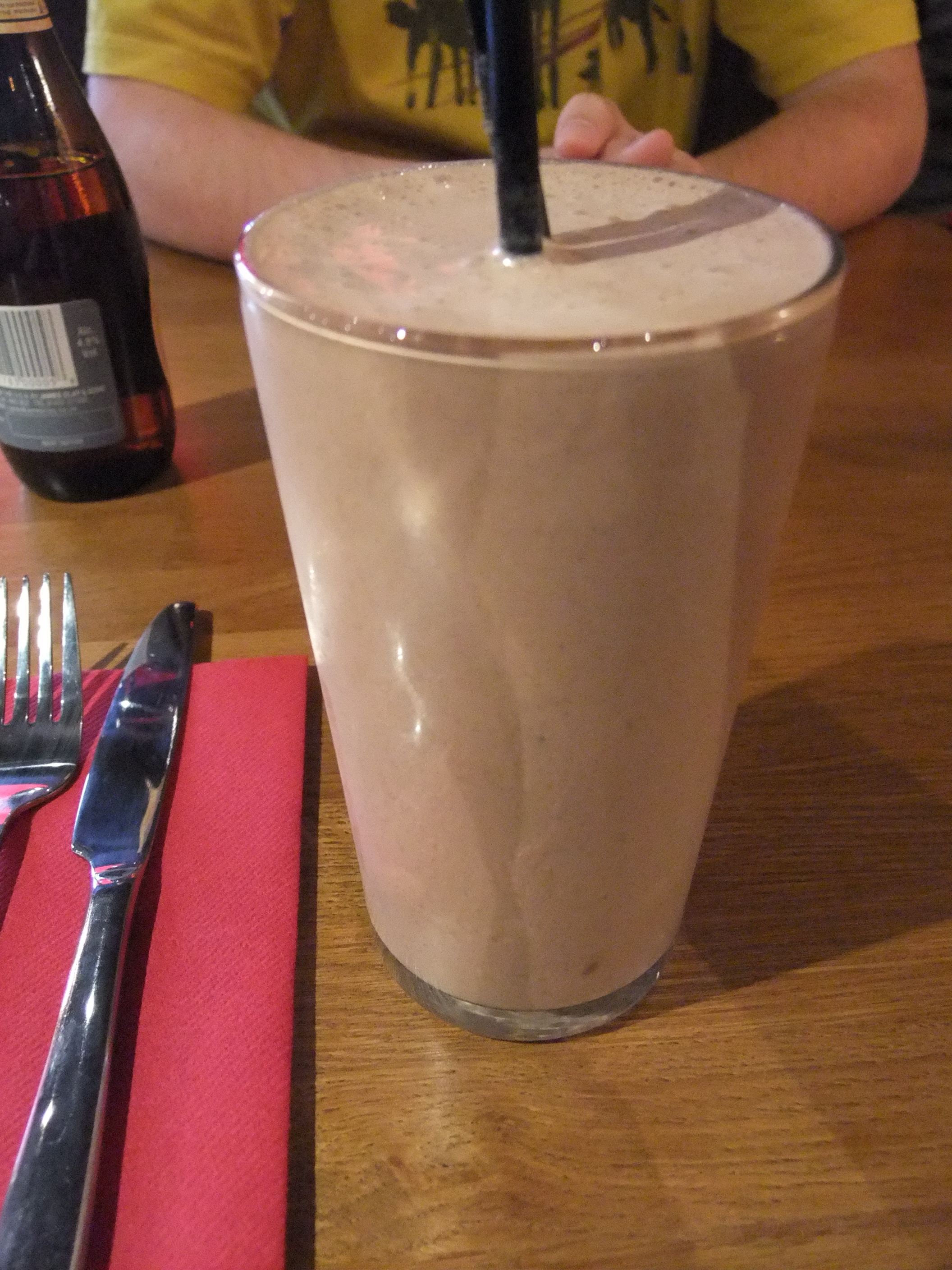 I opted for a milkshake instead which is made from two scoops of ice cream chosen from an extensive list of slightly eclectic options. My epic mash-up of chocolate ice cream, pecans, white chocolate crisped rice, toffee, oat cookies, chocolate chunks, cinnamon ice cream, grape, amaretti and roasted pine nuts made the gastronomically conservative Wicket slightly queasy, but the combination wasn’t at all bad in my opinion. The cinnamon and grape flavours overwhelmingly dominated the shake while the chocolate chunks helped make it very thick and viscous – it’s more like a dessert in a cup than a mere milkshake.