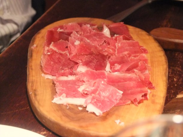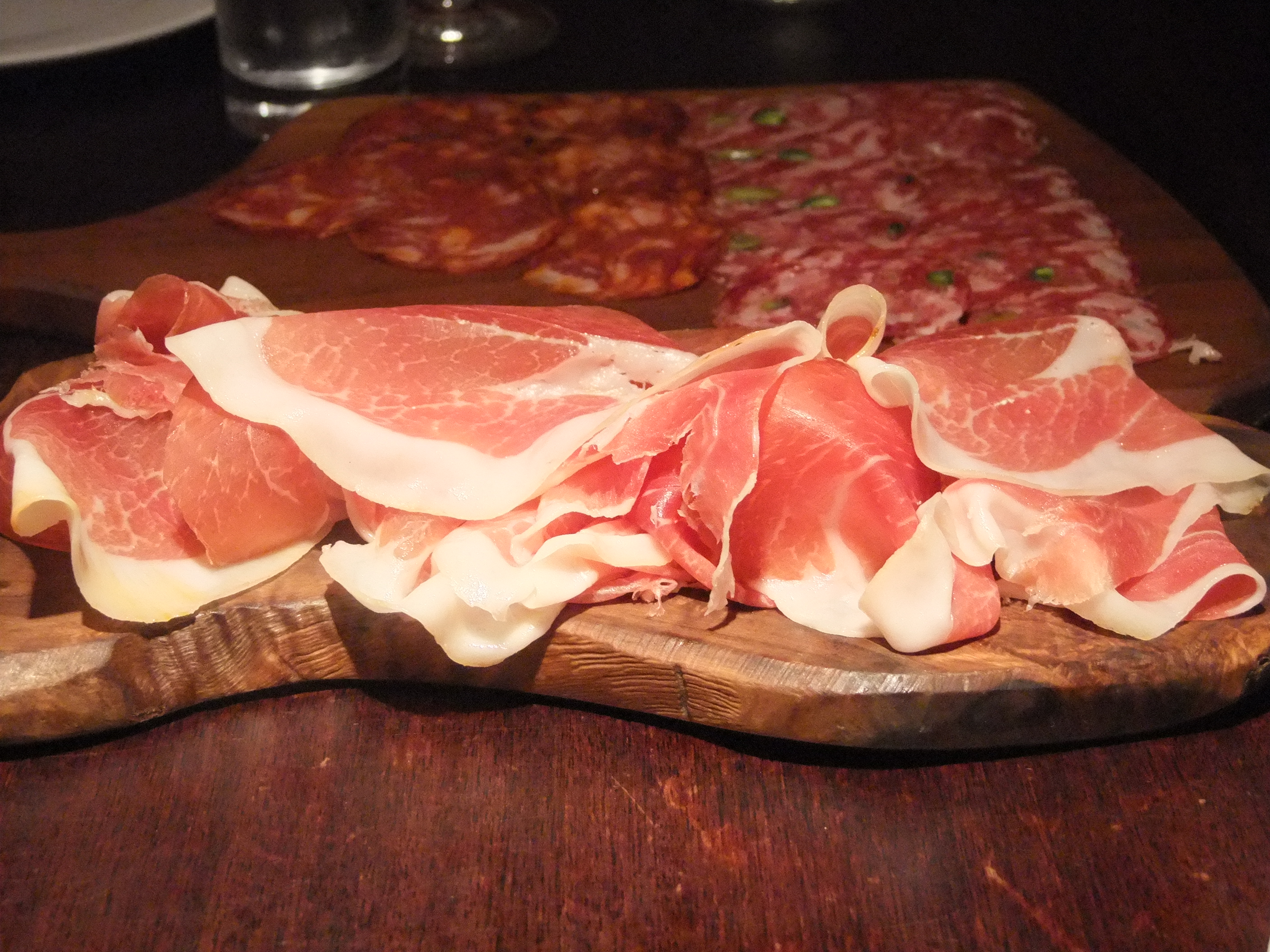 I’m not sure who picked the San Daniele proscuitto, but it’s a classic wafer thin ham full of fatty goodness and a much gentler saltiness than either of Weyoun’s charcuterie choices. Weyoun did have the inspired idea of asking for walnut oil which is intensely nutty and is surprisingly good as a dipping sauce for the proscuitto.