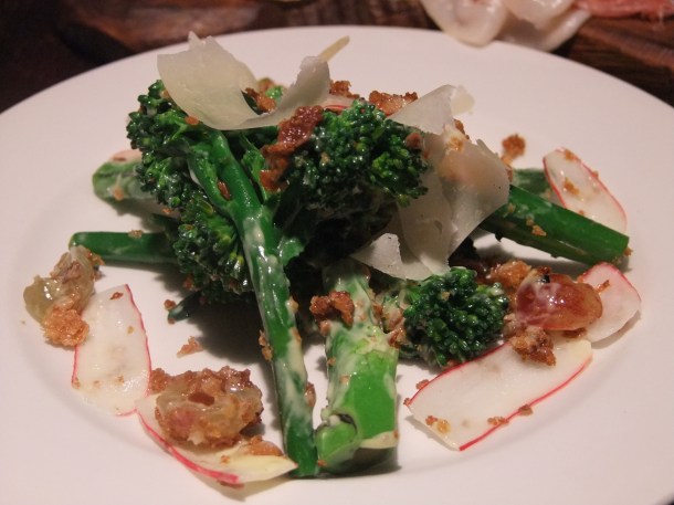 The Squelchie wolfed down the sprouting broccoli accompanied by grapes, radish and pecorino cheese which is always a sign of approval. The rest of us never had a chance.