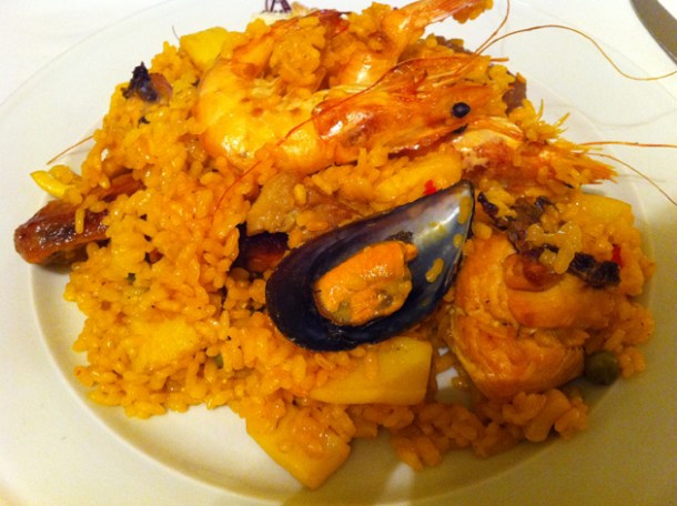 Thankfully my main course of mixed paella was a considerable improvement over the disastrous starter. In amongst the buttery rice were chunks of smoky chicken on the bone and even smokier fatty cuts of pork. The prawns and mussels, still in their shells, tasted bitingly fresh although the blobs of generic white fish and squid were a little bland. Somehow the disparate ingredients all come together for a satisfyingly hearty main course.