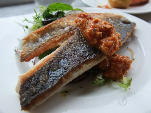 The one fish dish we did have was the grilled sea bass. The flavour of the fish was a little muted, but the crisp skin was perfect when topped with the lightly spiced sauce. The accompanying salad wasn’t an afterthought with its refreshing combination of olives, red onions and spring onions. Not bad, not bad at all.