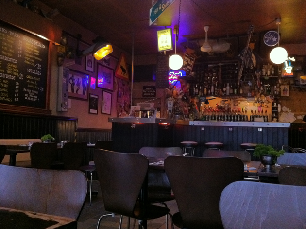 The place looks more like a bar, and a dive of a bar too, that happens to serve food than a proper restaurant. The open air area round the rear looks especially grim, with an appearance reminiscent more of a Reichchancellery patio circa 1945 than a pleasant space for knocking back a few drinks.