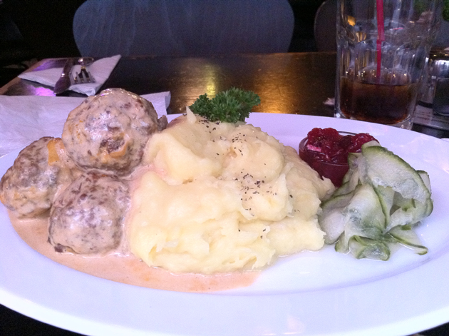 My first choice of fried, smoked Swedish sausages was sadly unavailable so I opted for the garlic meat balls on the advice of the waiter. Despite being doused in a creamy yet thin garlic sauce, the offally-tasting and coarse meatballs were surprisingly dry which made them difficult to stomach, even when slathered with lingonberry jam. As with the bay jumble, the garlic flavour was subdued at first, but had an unmistakably strong aftertaste. The accompaniments were far more pleasant with a sweet and creamy mash contrasting nicely with slices of vinegary cucumber.