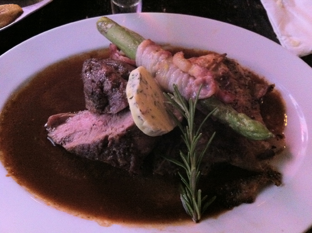 I started off with the bay jumble, a dish consisting of crayfish in a creamy, garlic sauce served on a garlic tortilla. The chunks of crayfish were unidentifiable as such and if it would have resembled a bland, tasteless supermarket prawn cocktail if it wasn’t for the garlic which is surprisingly subtle at first but has a very strong aftertaste. The pale yellow ‘tortilla’ resembled a pancake served with Chinese roast duck, but tasted of regurgitated vomit which made it difficult to stomach.