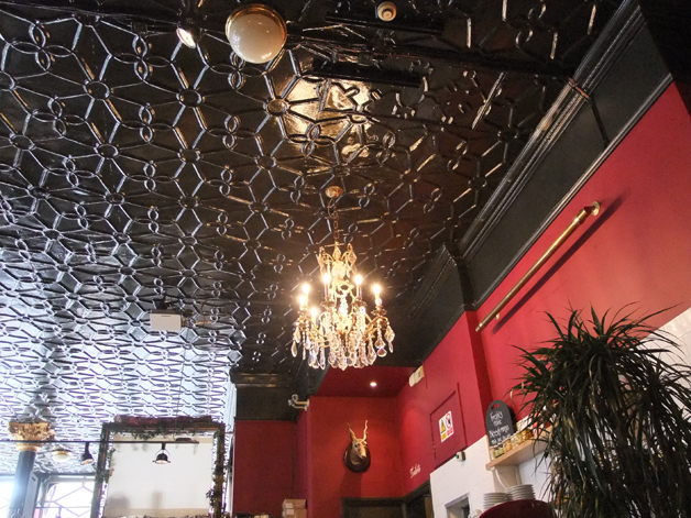 The Crown and Sceptre may be a pub, but it’s not an old man’s pub with sticky carpets, pensioners surgically attached to their stools and stained walls. The place is oddly decorated with chandeliers, deliberately chintzy lampshades, an unusually textured ceiling, mounted animal heads and an eclectic mish-mash of furniture. It may sound like a car crash, but somehow it all more or less works.