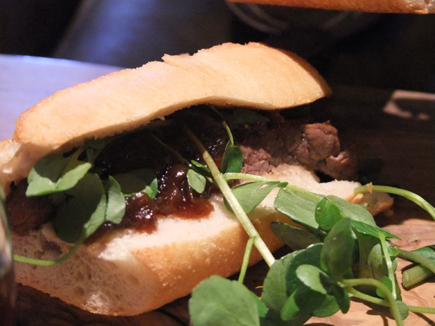 The Pulse opted for chunks of rib eye steak served in a ciabatta with watercress and red onion chutney. She enjoyed both the tangy chutney and the tender steak cooked medium, but, like Mumbles, thought the accompanying chips weren’t crisp enough.