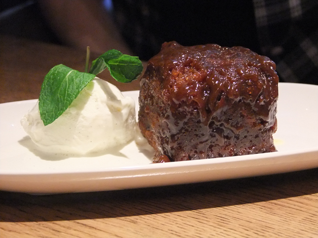 Sue-Ellen chose the sticky toffee pudding and, unusually, we were both in agreement on its merits. The raisin-studded cake was tangy and malty and wasn’t too crumbly – it was perfectly airy and moist instead. The toffee was very sweet and had a dark sugariness to it, but it wasn’t quite gooey enough for either my taste or Sue-Ellen’s. Overall, a very respectable effort.