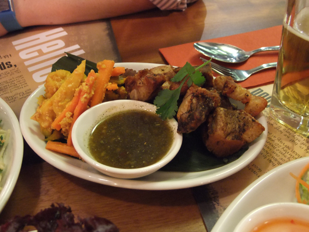 Wicket almost single handedly concocted an antidote to all the meat the three of us were eating by cannily ordering vegetables in the form of a green papaya salad and stir fried pak choi. The latter was fine (stir fried pak choi is pretty hard to screw up after all), but the papaya salad was a mixed bag. Although crisp and firm thanks to the shavings of unripe papaya, it didn’t taste of much and wasn’t especially refreshing either.