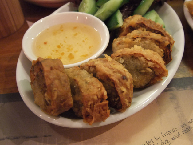 I started off with the euphemistically named chicken stuffed money bags, which turned out to be very odd. Inside the thick, deep fried dough wrappers was a surprisingly bitty, finely ground filling. It tasted more like a particularly bland version of falafel than chicken, although the sweet chilli sauce livens it up a little. Not a fan.