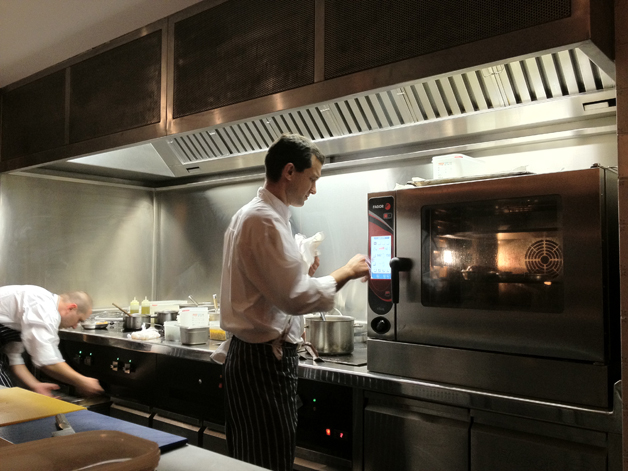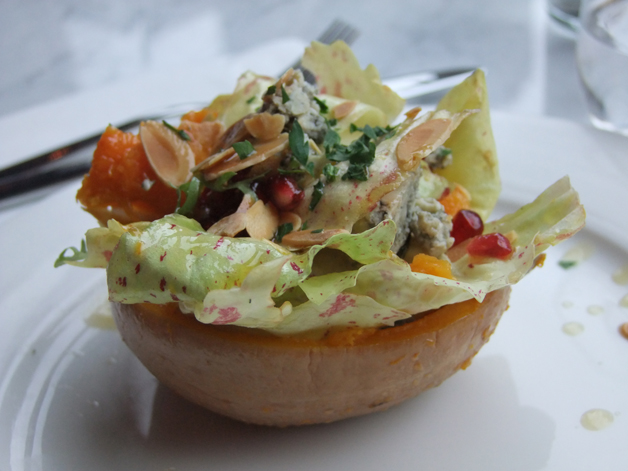 Wicket had the benefit of a visually arresting starter in the form of a butternut squash husk filled with the squash flesh, leaves and blue cheese. He seemed very impressed with the contrast between the creamy and sweet squash and the strong Gorgonzola-like tang of the blue cheese, while the scattering of pomegranate and rosemary added even more character and diverse flavours. Impressive.