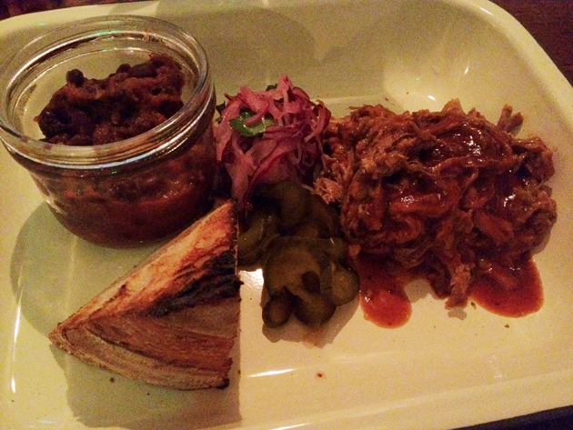 The vinegar slaw is essentially the same as the pickled white and red onions you already get with each helping of meat, but the burnt end mash is something else entirely. Although it looks like a demented tiramisu cooked up by Yosemite Sam, the smooth mash is made memorable by the lightly smoky, slightly chewy burnt ends which almost resemble beef jerky in their flavour and texture.