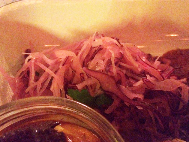 The hock, beets and pickle salad sounds intriguing and unusual, but it’s nothing more than ham hock mixed in with pickles and thin slices of pale red beets. While the juicy, tender and very meaty strands of hock are complimented well by the pickles, the beets are surprisingly muted and add little to the dish (sorry folks, no photo of this one).