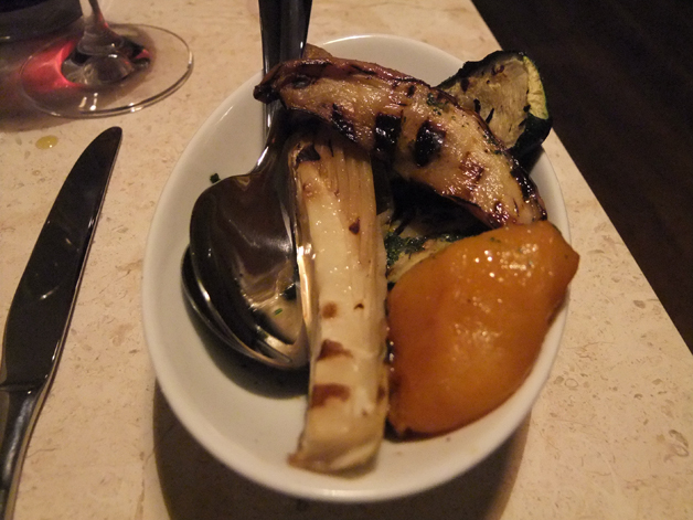 The Hedgie was also unimpressed with his plaice a la plancha. He was disappointed by the blandness and lack of flavour in the fish while the accompanying beans were firm if overseasoned. His side dish of grilled peppers, aubergine and courgettes was far more impressive. Although a bit too oily, the well-grilled vegetables were far more satisfying than the fish – especially the buttery courgettes.