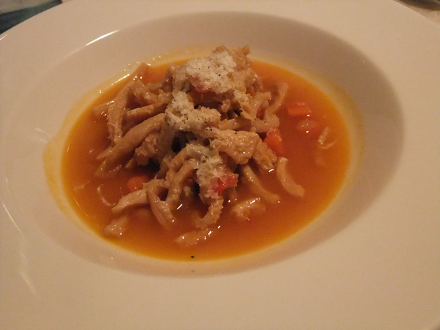 I started off with the hand chopped veal – the smooth mass of raw veal superficially resembles steak tartare. The tender meat is very light and almost fluffy. It tastes almost sweet, no doubt thanks to the fruity olive oil dressing but is otherwise very plainly seasoned. This meant that the dish lacked depth, but it was still pleasing especially when paired with the crisp bitter leaves which was a nice contrast in both texture and taste.
