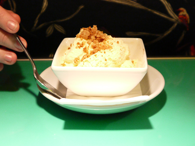 Given the low success rate of our savoury dishes, I wasn’t expected much from our desserts but these turned out to be surprisingly pleasing. Special K’s passion fruit syllabub was a particular highlight. Although it may look like a meringue, it’s actually very fluffy and whispy yet creamy and tart with a distinct taste of passion fruit. The topping of crushed almond biscuits attempt to add some variation in taste and texture, but feel like a last minute addition designed to placate Western palates.