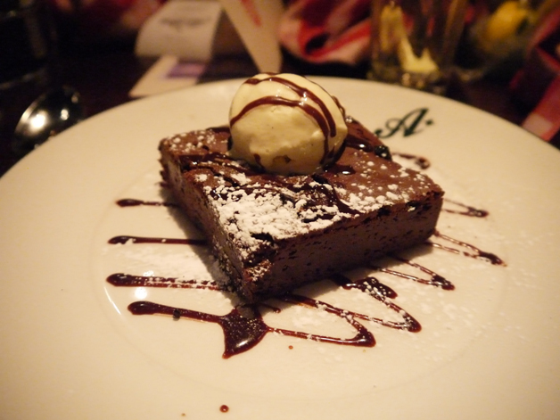 Neither Wicket nor Kangaroo Face had room for dessert, but I loosened my belt and made room for the bourbon raisin chocolate brownie with ice cream. Sadly but not surprisingly, this dessert wasn’t as good as its billing. The dry, characterless brownie had precious little quality chocolate in it, never mind bourbon or raisins. The vanilla ice cream had almost certainly been scooped out of a large, generic catering tub of the stuff judging from its bland nothingness.