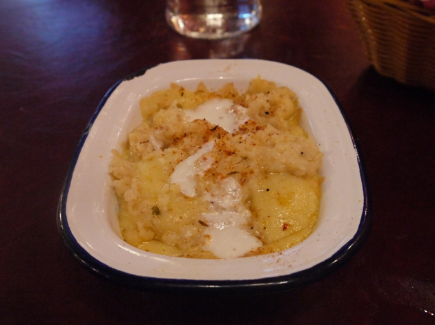 Baron Greenback was just as intrigued with the menu as I was so we popped along after work one weekday evening. I started off with the she-crab soup. I’m not sure why eating a female crab would be more preferable to a male one, but the half-crab here is served in a thin but surprisingly buttery and salty soup peppered with succotash, a mixture of beans and corn which is very tasty. Extracting the crab meat from the spiky shell was more trouble than it was worth given that there wasn’t much of it and that it didn’t seem to go especially well with the vegetable soup.