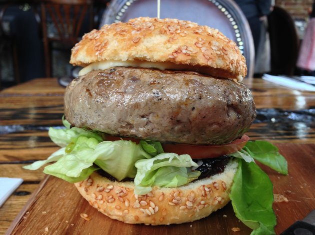 Unlike the other two burgers above, it was actually possible to taste and savour the qualities of the patty as this burger wasn’t dominated by its other ingredients. The sweet, tangy, slightly smoky onion jam complimented the tanginess of the patty rather than competing with it. The ‘three cheese’ sauce essentially resembled American cheese in its creamy sweetness, but this went down surprisingly well when combined with the onion jam. The bun was still a mess though. It just wasn’t big enough to hold everything together and the bottom half became very soggy due to all the meat juices and crumbled to pieces – a burger faux pas I haven’t seen in a long time.