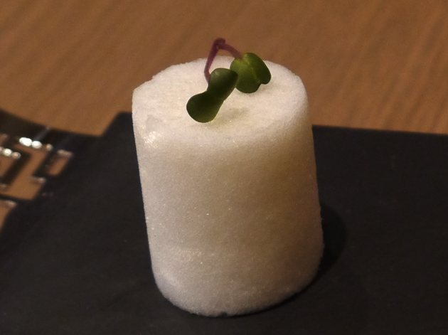 The final tomato bite was a delicate and light tomato-flavoured marshmallow-esque foam with a herby basil-ish tint to it.