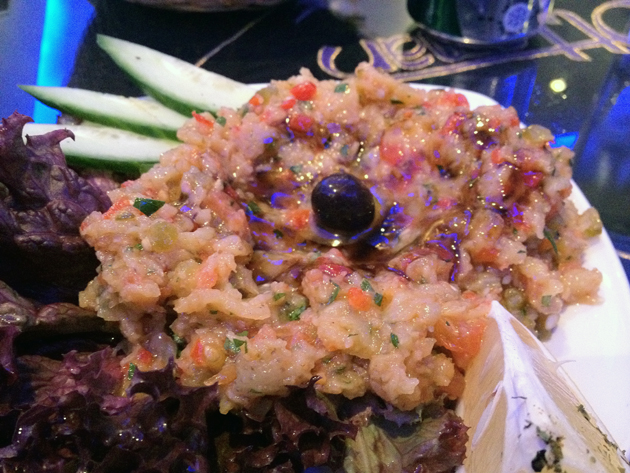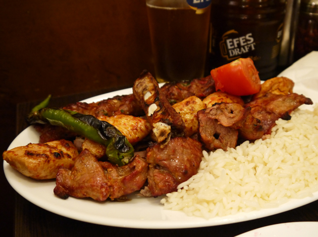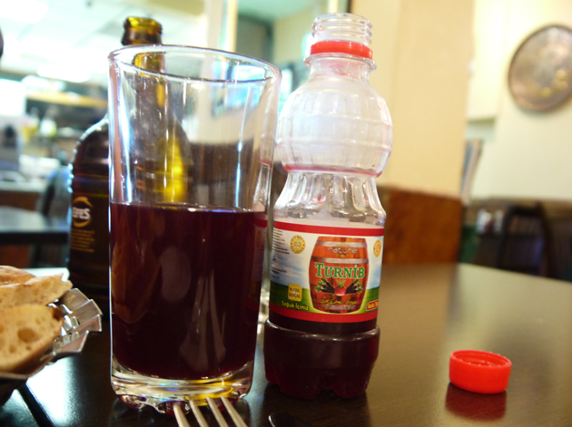 I wetted my whistle with a bottle of salgam. This spiced and salted drink of pickled carrots and turnips served cold won’t be to everyone’s liking but I’m a big fan of its tingly, tart yet refreshing taste. Veal Smasher, Happy Buddha and Templeton Peck all went for the Efes Draft. Peck thinks it’s smoother and crisper than the standard brew Efes.