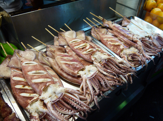 I’m a big fan of squid and there’s some tender, grilled-to-order squid available marinated in a sweet, lightly salty sauce.