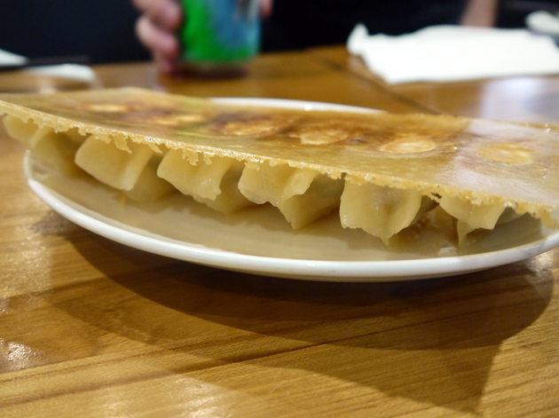 The grilled prawn dumplings had an even odder appearance than the pork and sticky rice dumplings. All of the individual dumplings were joined together by a thin crispy layer of buttery pastry and they have to be snapped apart with some chopsticks. The eggy butteriness of the base compliments the saltiness of the prawn filling and the supple dumpling skins surprisingly well.