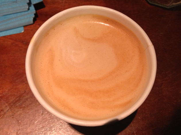 This Italian cafe and wannabe-deli is located only a few doors down from Store Street Espresso. Its flat white is available in regular and large sizes. The large serving is monstrously big and the sheer amount of coffee probably accounted for the fireworks going off in my head. It’s a smooth, silky coffee, but it’s also very milky and thus quite bland. This flat white is bordering on latte territory, but at least it’s not as desperately bad as some of the other coffees here.
