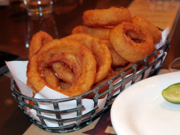 The onion rings were a disappointment. While whole slices of mildly sweet onion were used, it was hard to appreciate them as they were buried under a thick layer of doughy, bland batter.