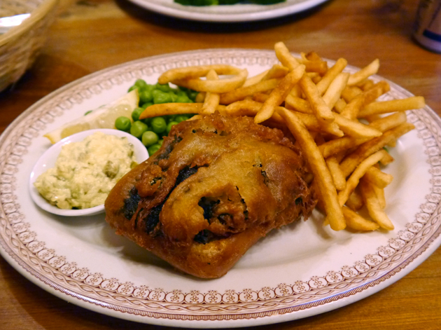 The chips weren’t really chips but dry, bitty fries instead. The accompanying tartar sauce tasted mostly of tart, vinegarish cornichons which wasn’t unpleasant, merely odd.