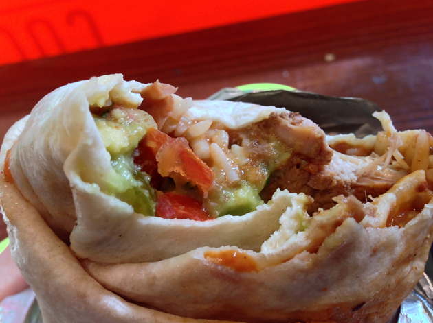 Burritos almost always come with a choice of beans – black turtle beans or mashed, refried pinto beans. The former should be salty, the latter should creamy and nutty and both should be hearty and not too soft or mushy. I’m not a fan of either cheese or sour cream in my burritos, so I usually order without them. All of this should be tightly wrapped in a tortilla with little to no leakage. A burrito shouldn’t be served ‘wet’, i.e. topped with a mixture of tomato sauce and cheese as is common in godawful Tex-Mex restaurants. If I wanted a bastardised enchilada, then I’d order one.
