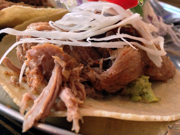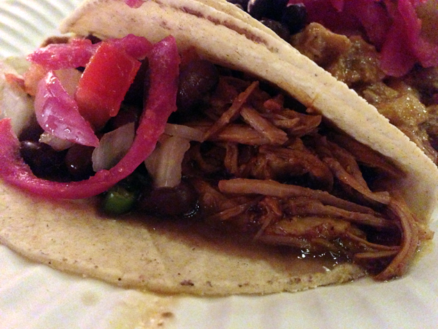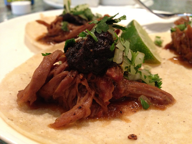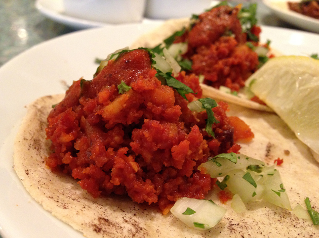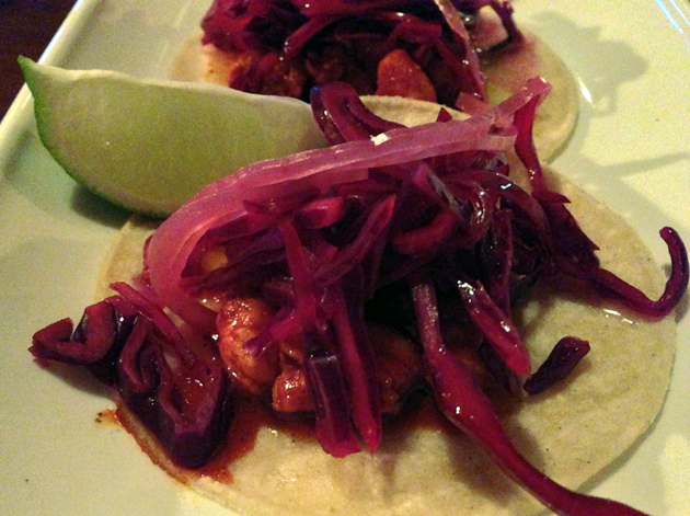 Sadly, the most disappointing of the tacos I tried were the ones filled with ‘Mayan-style’ braised pork. Although sweet and slightly spicy, the meat lacked the tangy moreishness I was expecting. The sweet, sharp pickled onion garnish made up for this to some extent though.