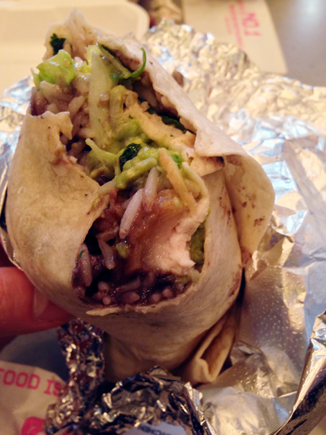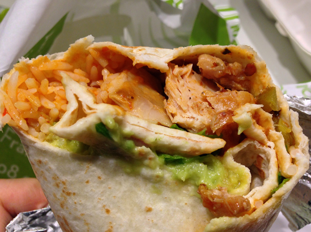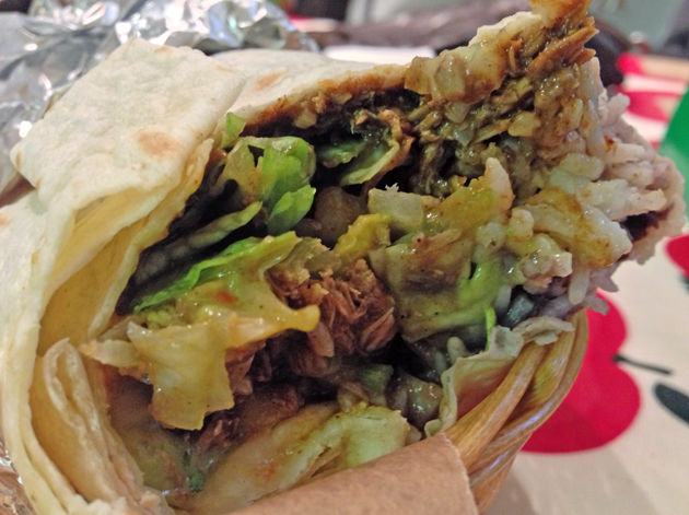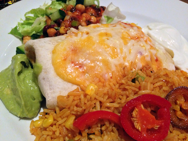 Burritos may be the equivalent of a sandwich, but that’s no excuse for having a bad one. A burrito should consist of a hearty, flavoursome meat filling, a hot spicy sauce and a zesty, coarsely ground guacamole to balance out the spiciness. Rice is, as I understand it, a relatively recent American addition with more authentic Mexican burritos omitting it. If rice is going to be present in a burrito, then the ratio between meat and rice should be in favour of the meat.