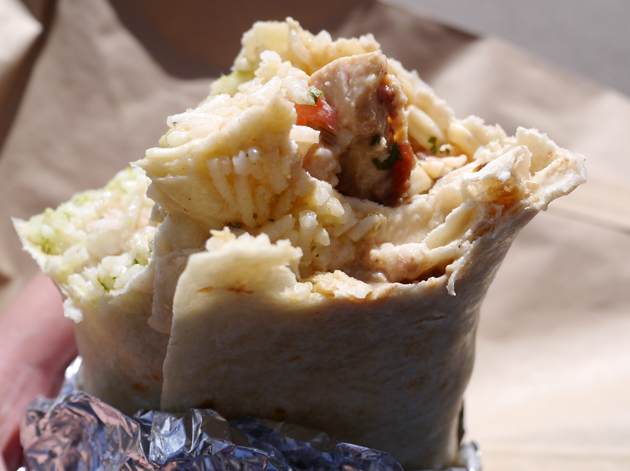 The burrito was a touch on the small side, but don’t be tempted to order the onion rings to fill that hole. Although free from excess oil, the reconstitute mash of onion underneath the thin, limp batter wasn’t worth the calories.