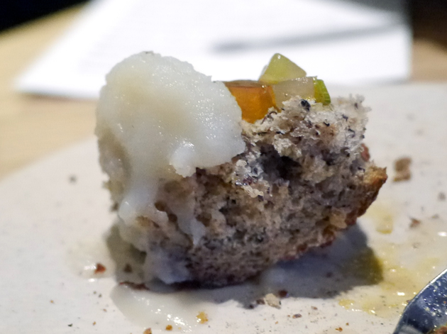 I was non-plussed by the rabbit ‘sandwich’, a finger-sized puff of anonymised, textureless meat although I did appreciate the macabre whimsy of the tart, pickled carrot topping. The Hedgie was more enamoured with it and while texture can be successfully separated from taste to stunning effect, I remain unconvinced that this can be done with meat.