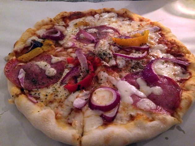 The base changed yet again when I sampled the vegetarian verdure option, swinging back to a style closer to the one used in the capriciosa. The sweet, juicy peppers drowned out the already muted mozzarella and the mushrooms added little. The artichokes were tender and moist, but there wasn’t enough of them. Compared to the meat pizzas that I’d tried, the verdure felt like a vegetarian poor relation.