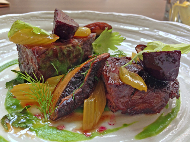 Soused silver darlings sound like a species of bird, but it’s actually just pickled herring. Paired with crisp pickled vegetables, the fish was tart and sharp. It was pleasing enough, but it’s not far removed from the pickled herring you’d find from a street vendor in Amsterdam.