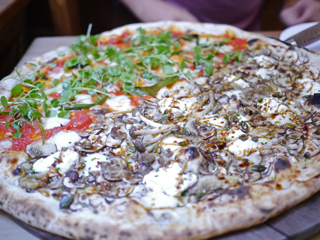 I returned to Homeslice with Templeton Peck and managed to snag a table this time around. For one side of our half-and-half, we opted for the mushroom, ricotta and pumpkin seeds which turned out to be our favourite. The earthy mushrooms, which surprisingly included some taut and firm enoki shrooms or something similar, was complimented very well by the coarse yet fluffy and creamy ricotta. The pumpkin seeds didn’t taste of much, instead providing a variation in texture with their crunchiness. The spicy hint provided by the chilli flakes rounded off a nicely balanced pizza.