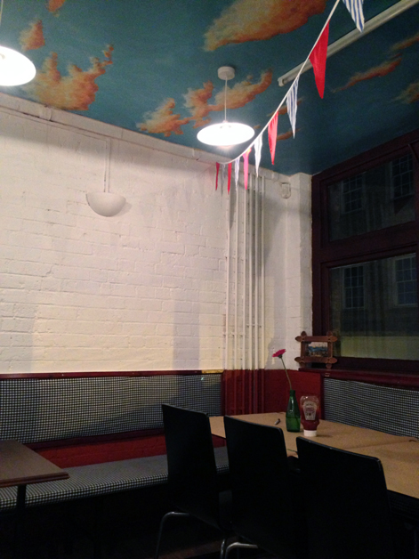 The bare caff-style surroundings are distinctly lacking in ambience, but the quality of the steak sandwich alone more than makes up for this. The tender and slightly chewy strips of bavette steak were cooked medium rare and had a woody, earthy and lightly smoky taste. I was afraid that the tangy, slightly chewy ciabatta would obscure the steak’s character, but I needn’t have worried – the beef’s flavour came through beautifully. The delicious qualities of the steak were enhanced by the tangy mayo and sweet roasted peppers, although I’d happily trade the peppery rocket for more steak. Superb.