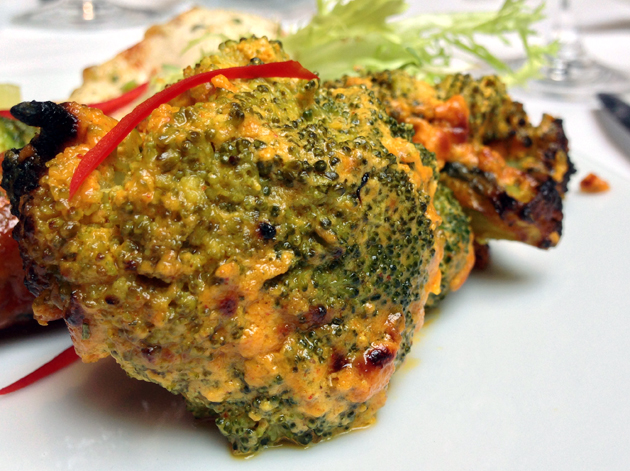 The tandoor-cooked king prawns were better – firm and smoky with a light hint of garlic. The broccoli florets was the standout starter here, topped with a flavoursome, mildly bitter paste made from cumin and fenugreek.