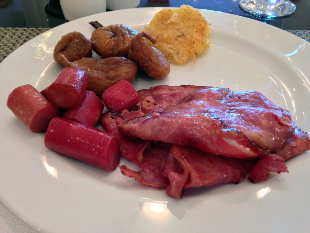 The breakfast buffet, on the other hand, was better. The makdous turned up again, but there was plenty for carnivores. The thin slices of beef bacon tasted somewhat similar to roast beef and was surprisingly addictive, while the smooth and salty chicken sausages tasted surprisingly close to the pork frankfurter variety. The museli, hash brown and halwa weren’t bad, but rather forgettable. Surprisingly, quality fruit was thin on the ground with only the dried figs standing out.