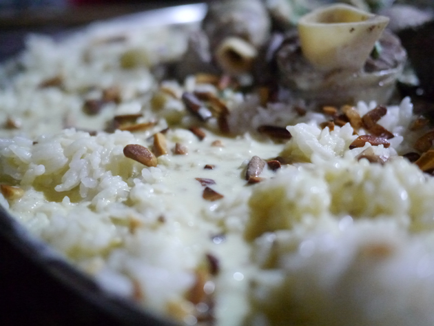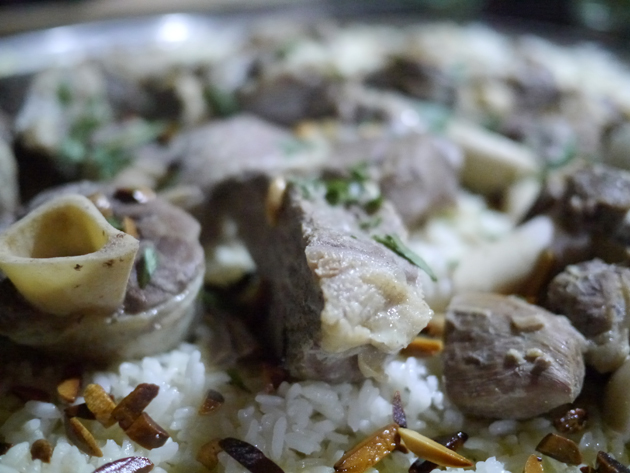 Mansaf is traditionally eaten using your hands, although I couldn’t bring myself to do it and chickened out with a spoon instead. Apparently the trick is roll some rice and meat into a ball and then flick it into your mouth. The chunks of lamb, served on the bone, was tender and occasionally earthy, but most of the flavour came from the creamy and mildly tart jameed. It was a warming and very hearty dish.