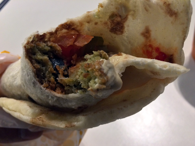 The falafel available from the Kahla stand at Amman’s airport was far better, although it still wasn’t quite as good as the falafel from Hoxton Beach back in London. Wrapped in a thin, almost crepe or roti-like flat bread, the falafel balls were soft and fluffy, although the portion was a little on the small side. The light smearing of hummus and muttabel was a little miserly too, but the spicy sauce did have a tingly heat to it.