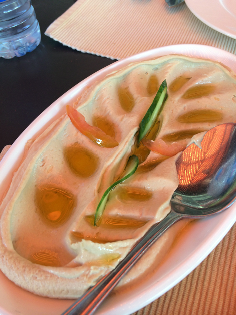 The Marina Plaza Red Sea resort is frequented by truck loads of Jordanian, Western and Russian tourists which inevitably meant that the dinner-time buffet was aimed at the lowest common denominator. The meat was a particularly dreary affair – the chicken shish kebabs and stewed lamb served with chickpea-flecked rice were both bone dry and barely edible as a result.